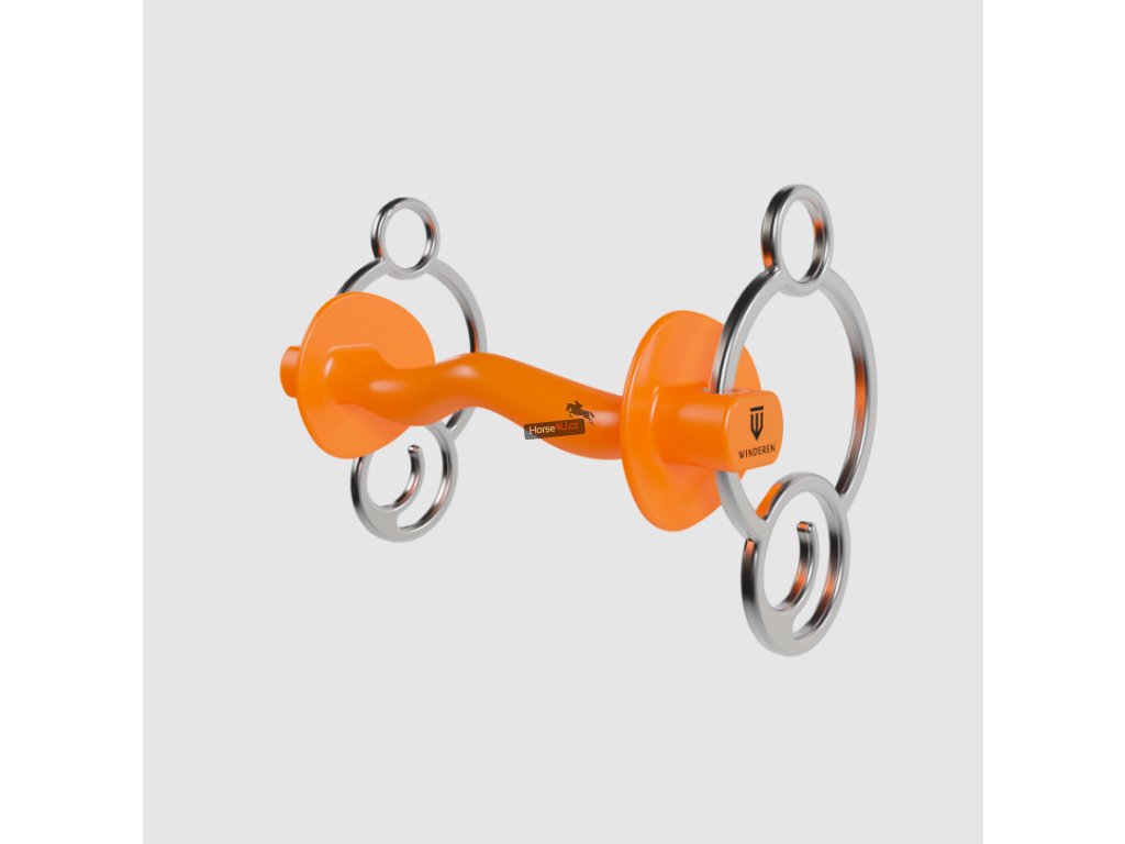 Oranžové/bílé pevné vyklenuté udidlo Pessoa s ochrannými kroužky Winderen