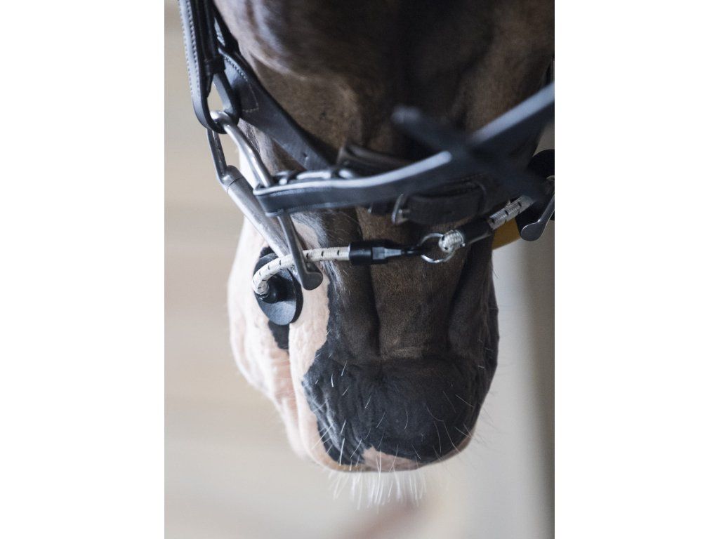 - Zabraňuje koním žvýkat otěže.