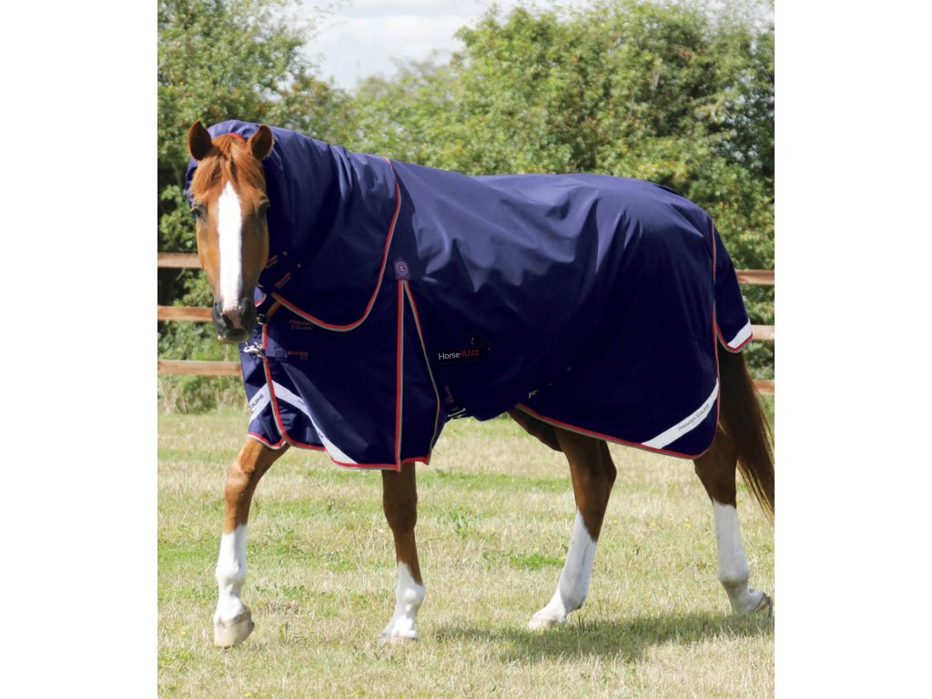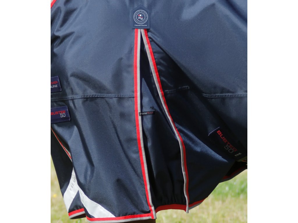 Výběhová deka Buster Original 50g je vyrobena z odolného a prodyšného vnějšího balistického nylonu 840D. Tato deka s voděodolným a prodyšným systémem udrží vašeho koně v suchu a pohodlí, ale také pomůže regulovat jeho teplotu. Vybavena nástavci pro standardní dekové vložky pro zvýšení tepla, což z ní činí všestrannou celoroční variantu. Deku zdobí elegantní detaily, kování z nerezové oceli a kontrastní švy doplňují styl. Všestranný a stylový doplněk do šatníku každého koně. S odnímatelným krčním dílem. Včetně voděodolného obalu.