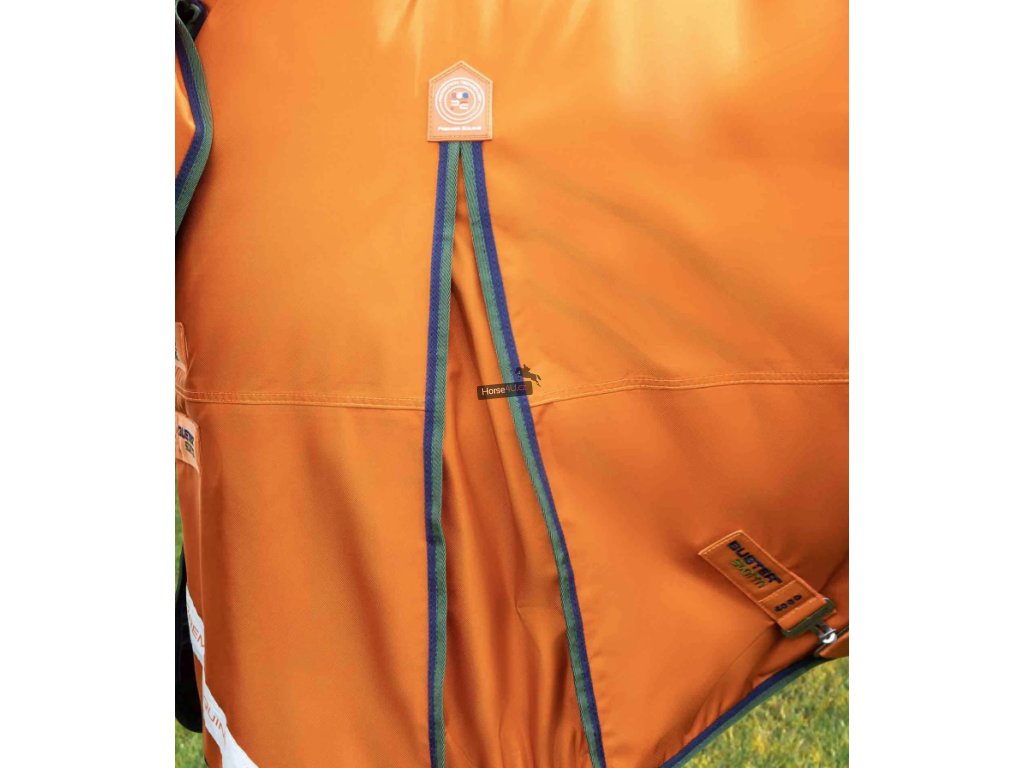 Výběhová deka Buster 400g je vyrobena z odolného a prodyšného vnějšího balistického nylonu 840D, obsahující 400 g výplně. Tato deka s voděodolným a prodyšným systémem udrží vašeho koně v suchu a pohodlí, ale také pomůže regulovat jeho teplotu. Jako součást evoluce řady „Buster“ byl začleněn extra vysoký klínek ramen, který umožňuje větší rozsah pohybu. S odnímatelným klasickým krytem krku poskytuje dodatečnou ochranu před živly. Včetně nepromokavého obalu.