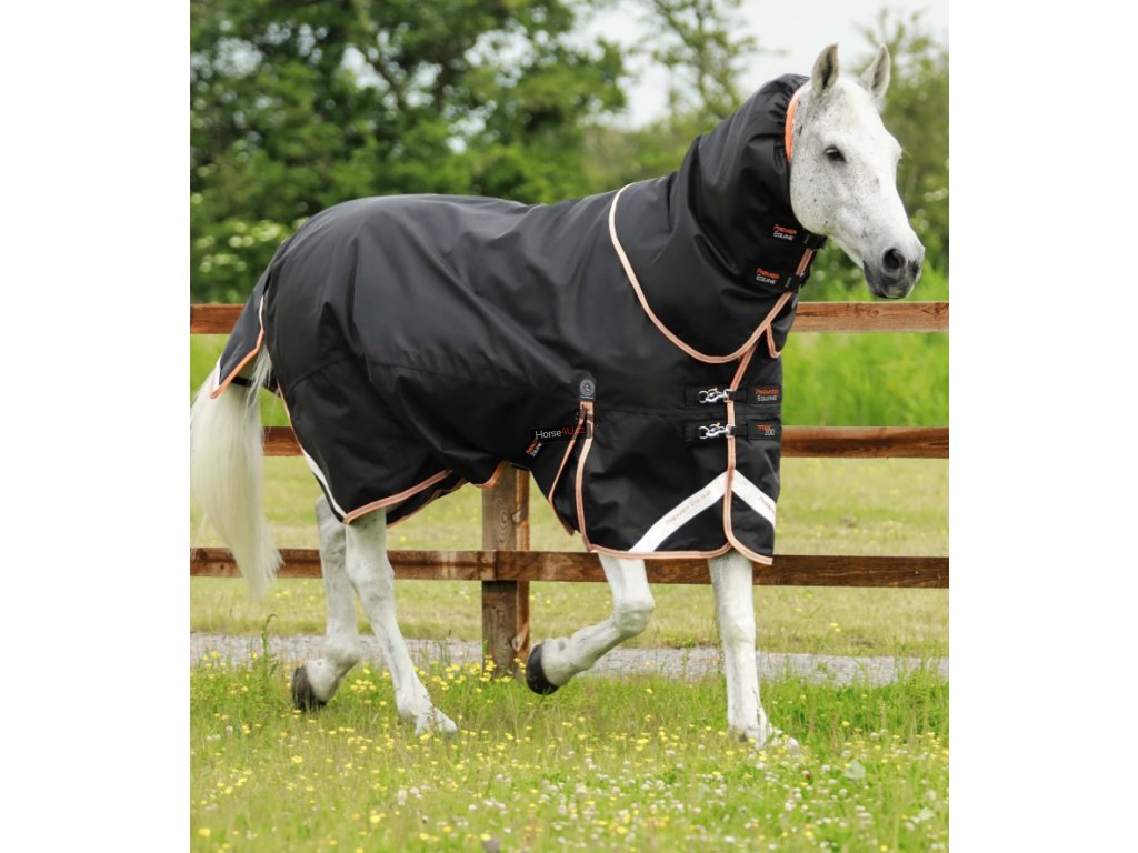 Výběhová deka Titan 300 g je vyrobena z odolného a prodyšného vnějšího balistického nylonu 1680D, obsahující 300 g výplně. Tato deka s voděodolným a prodyšným systémem udrží vašeho koně v suchu a pohodlí, ale také pomůže regulovat jeho teplotu. Skvěle všestranná voděodolná deka skvělá pro použití v chladných dnech a nocích. S odnímatelným klasickým krytem krku poskytuje dodatečnou ochranu před živly. Včetně nepromokavého obalu.