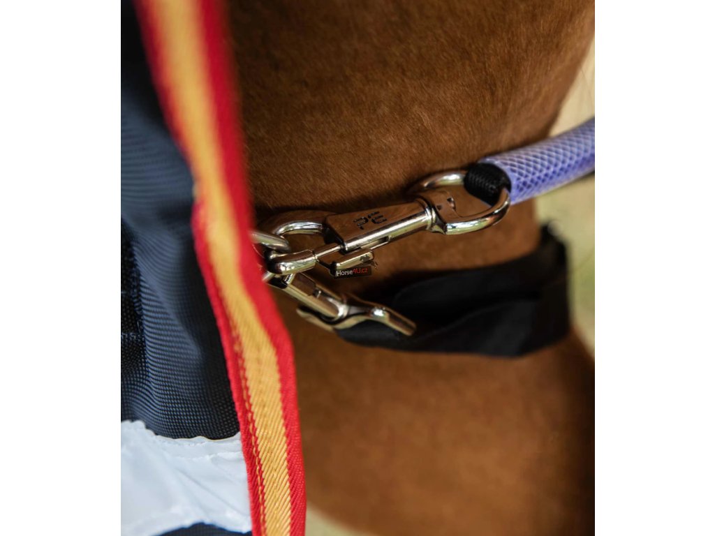 Výběhová deka Titan 450 g je vyrobena z odolného a prodyšného vnějšího balistického nylonu 1680D, obsahující 450 g výplně. Tato deka s voděodolným a prodyšným systémem udrží vašeho koně v suchu a pohodlí, ale také pomůže regulovat jeho teplotu. Skvěle všestranná voděodolná deka skvělá pro použití v chladných dnech a nocích. S odnímatelným klasickým krytem krku poskytuje dodatečnou ochranu před živly. Včetně nepromokavého obalu.