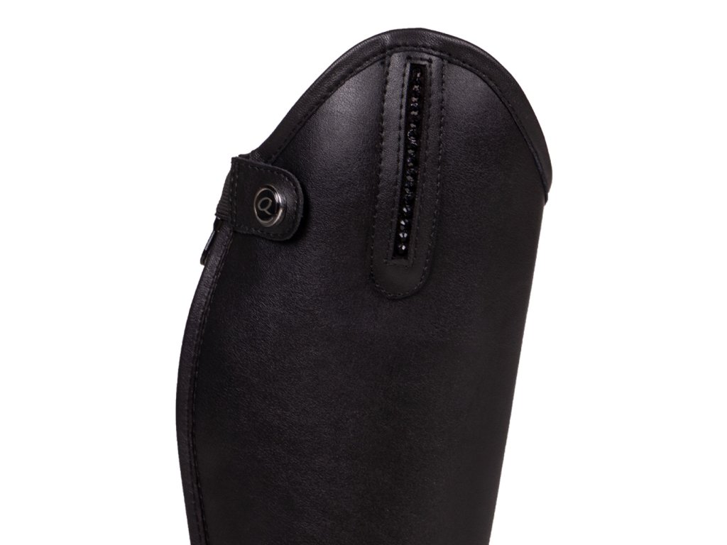 Vysoké jezdecké boty Jessy jsou ozdobeny kamínky na vrcholu boty. Vzadu zapínání na zip s elastickou vsadkou vedle. Moderní přiléhavý střih se středně vysokou klenbou. Na horní straně boty je pásek s drukem s logem Q.
